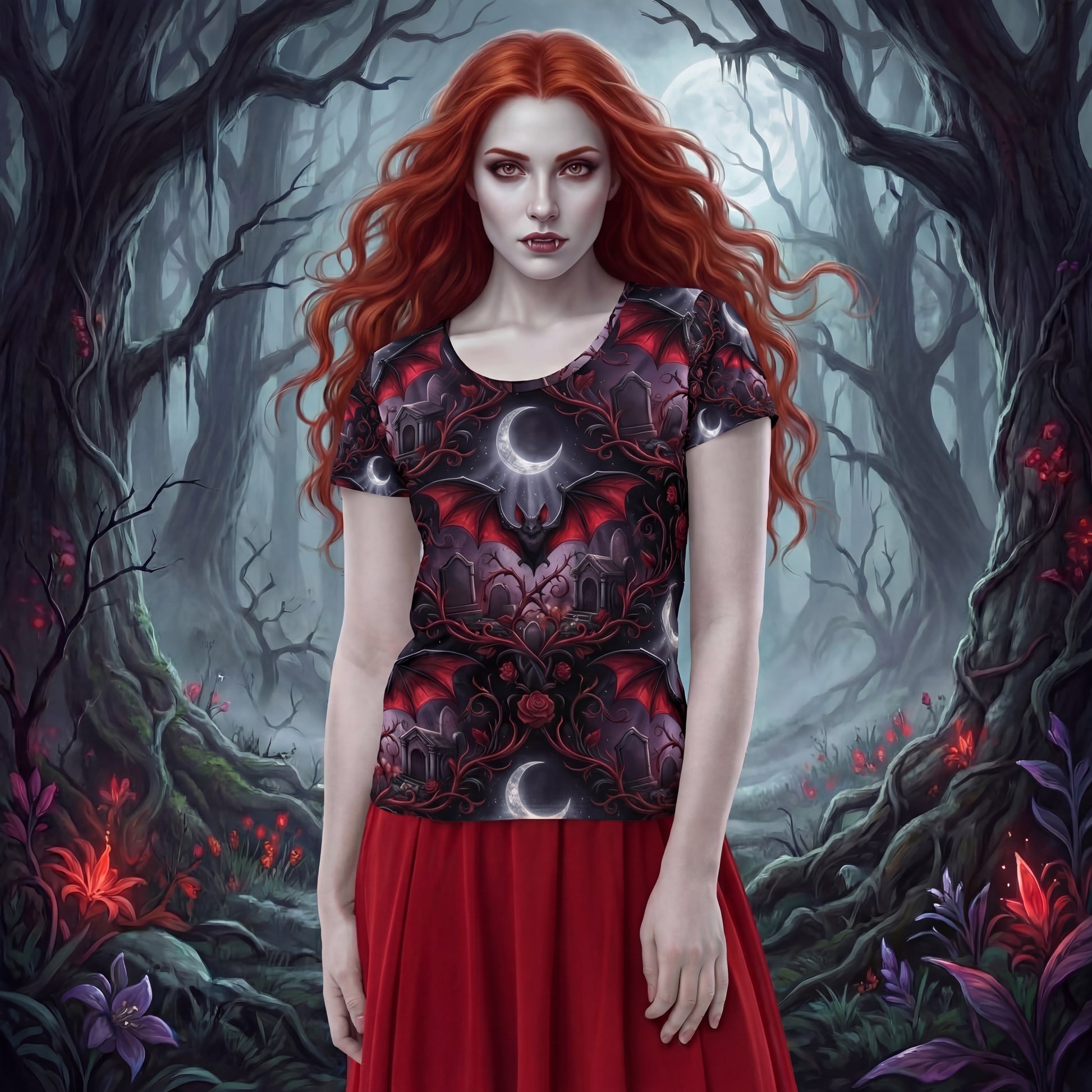 Vampire Bat Athletic Tee | Gothic Graveyard Damask Print | Woman's Athletic Sports Shirt